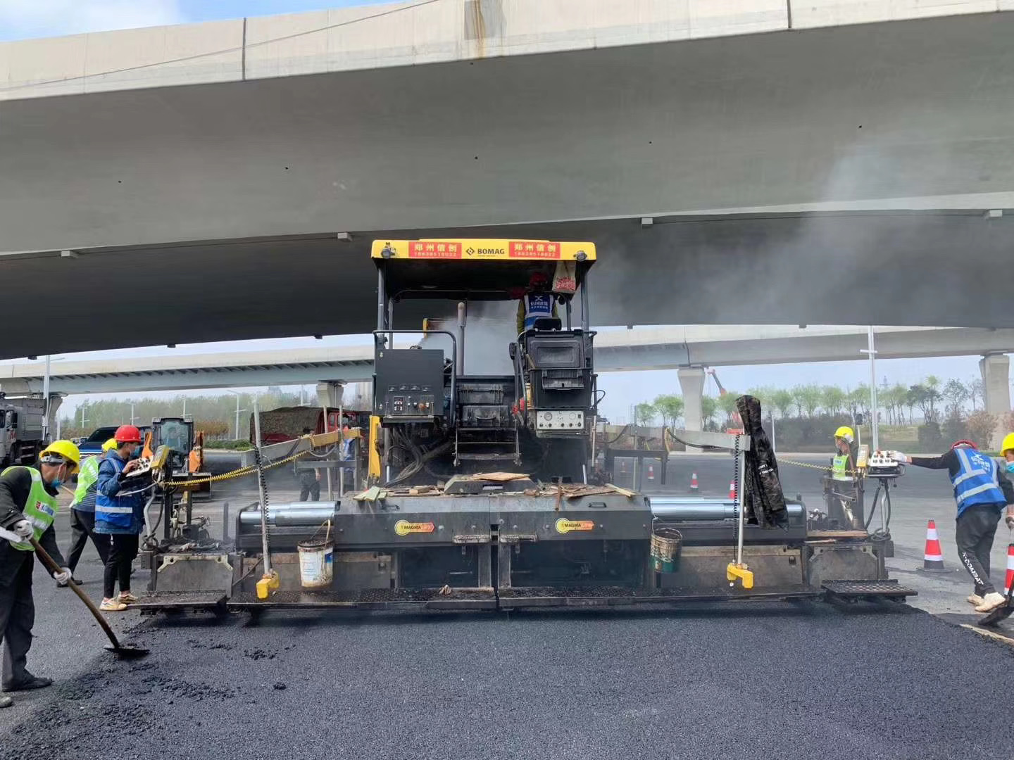 在整個攤鋪過程中,鄭州飛益元現(xiàn)場管理人員跟班作業(yè),加強(qiáng)施工前后的溝通,嚴(yán)格控制配合比調(diào)試以及瀝青混合料檢測,確保拌合、運(yùn)輸、攤鋪溫度、碾壓速度、壓實度、厚度、平整度等指標(biāo)符合規(guī)范標(biāo)準(zhǔn)。