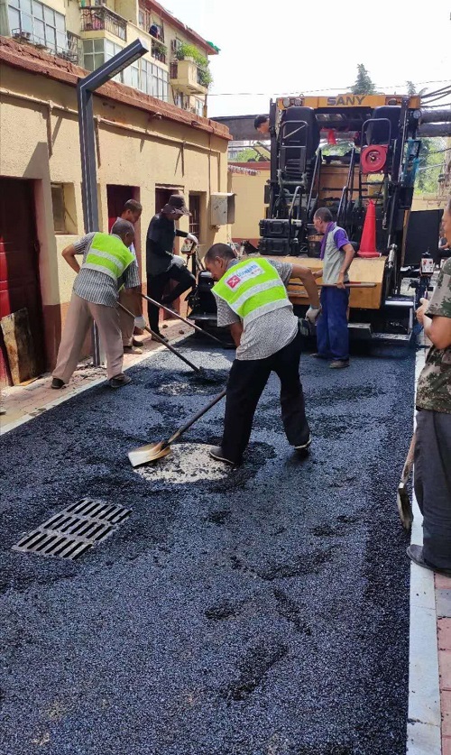 鄭州老舊小區(qū)路面瀝青攤鋪過程