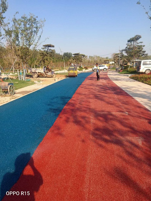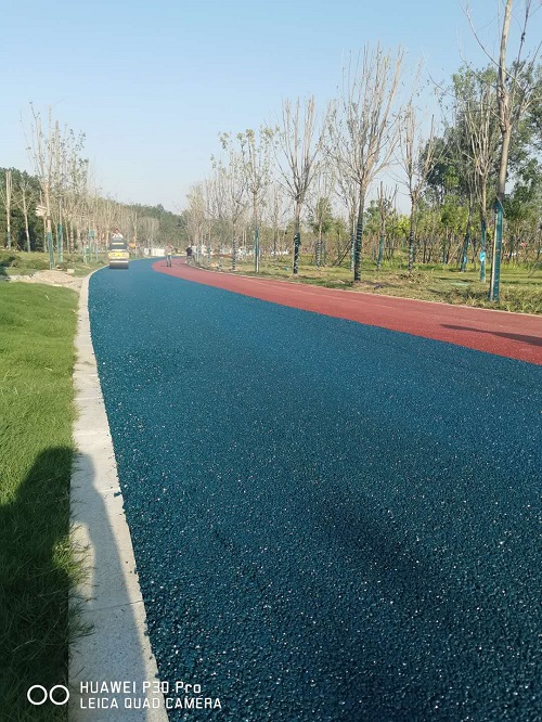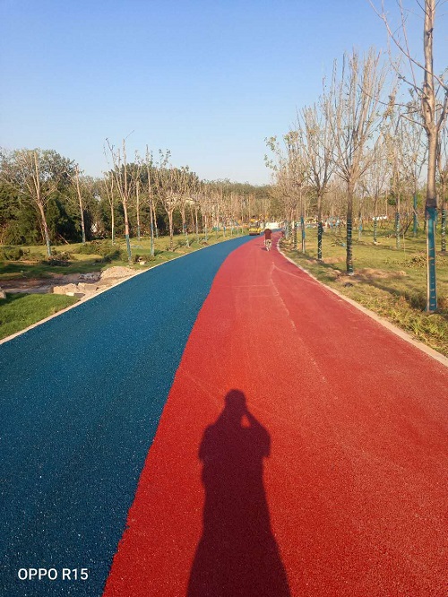 (4)具有良好彈性和柔性,“腳感”好,適合老年人散步,且冬天還能防滑,再加上色彩主要來自石料自身顏色,也不會(huì)對(duì)周圍環(huán)境造成大的危害。(黃河生態(tài)廊道鄭州彩色透水瀝青攤鋪)