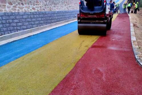 新鄉(xiāng)彩色瀝青道路有色澤鮮艷持久、不褪色、能耐77℃ 的高溫和-23℃的低溫,維護(hù)方便。