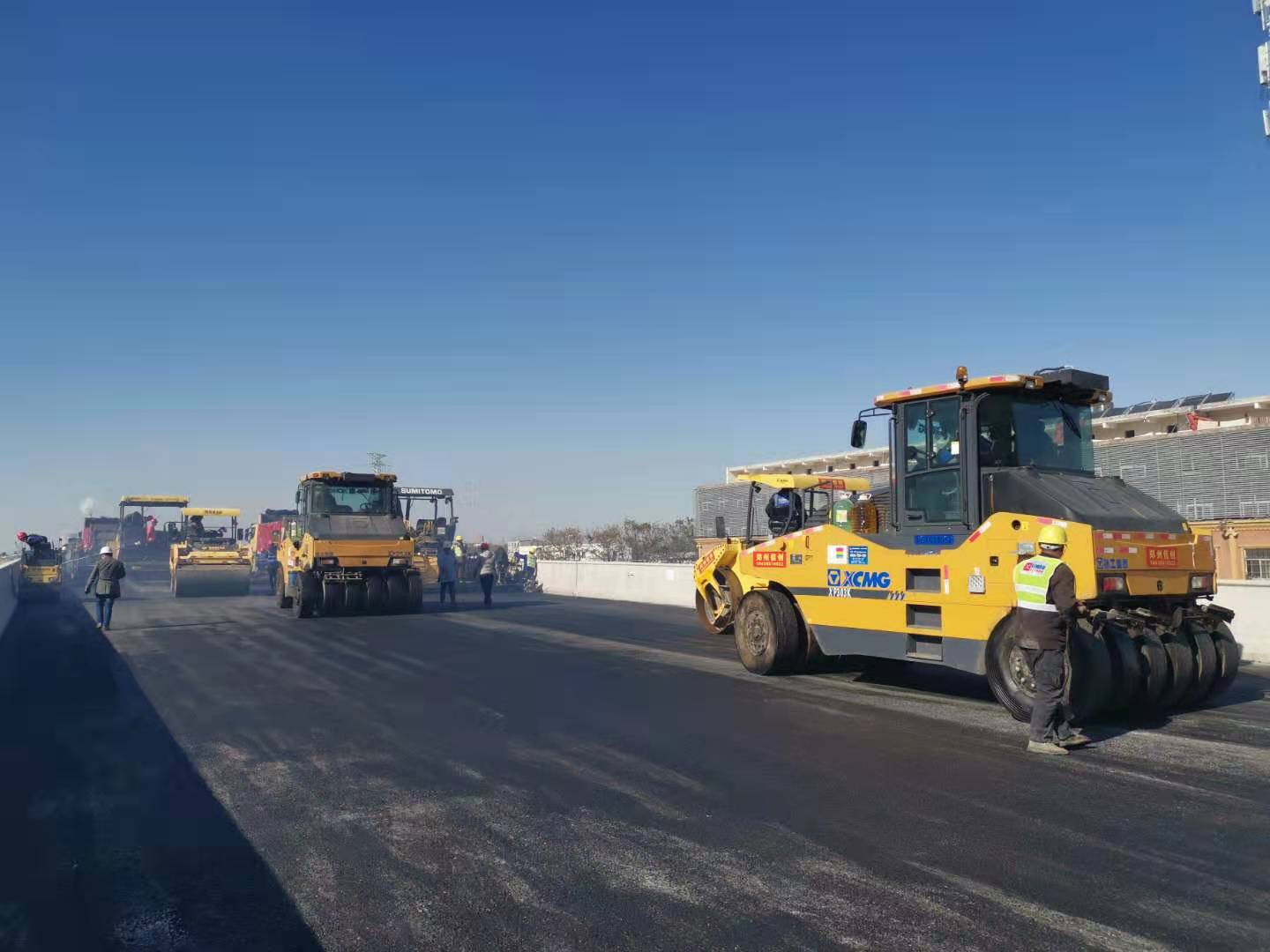 鄭州南四環(huán)高架瀝青道路施工現(xiàn)場(chǎng)