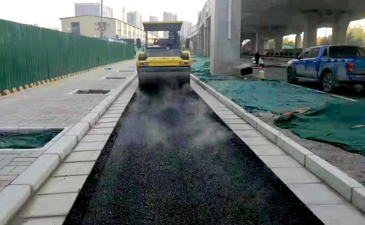 鄭州北三環(huán)東延姚橋人行道瀝青攤鋪現(xiàn)場(chǎng)