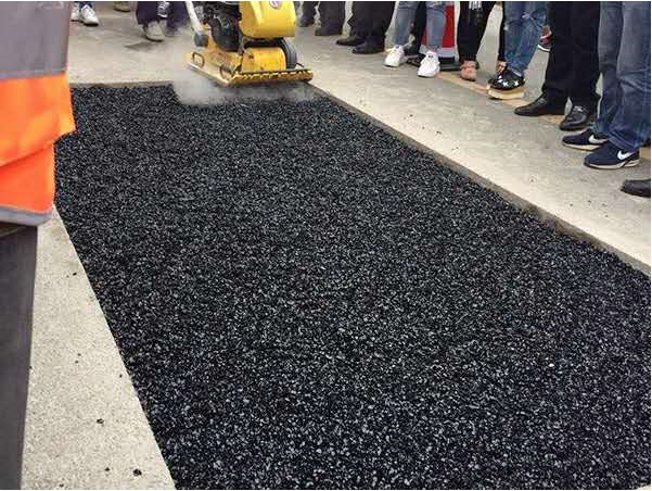 把足夠的冷補材料添進坑槽,直到高出地面1.5cm 左右,高速公路和一般公路修補,其冷補料的投人量可增加10%左右。填滿后坑槽中央應高于四周路面并呈弧形。如路面破損深度在5cm 以上時,填補工作應以 4cm為一層,分層填補,逐層壓實,鋪設均勻后,根據(jù)實地修補環(huán)境、修補面積大小和深度,選擇是當?shù)膲簩嵐ぞ吆头椒ㄟM行壓實。如:人工夯實、震動板夯實、壓路機壓實等方式。壓實完成后可在表面均勻的撒上一層石粉或細砂,使用清掃工具來回清掃,以使細砂填滿表面空隙。修補玩的坑槽表面應光潔、平整、無輪跡,坑槽四周和邊角一定要壓實、無松散等現(xiàn)象,普通修補壓實度要達到93%以上。高速公路修補壓實度要達到95%以上。