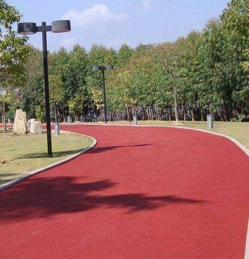韌性好、不開裂、色澤鮮艷、不掉色、不脫皮、施工快(日施工1500平)、施工完畢1小時開放交通、零下20攝氏度也能正常施工,噴涂/刮涂工藝方式鋪裝,施工省時省力,效率高。