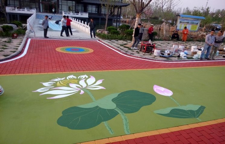 4、施工便捷:以人工施工為主,底層刮圖彩色膠黏劑,面層鋪灑陶瓷顆粒,不需要很高的技術(shù)和難度。而且也不需要大型建筑設(shè)備。因此,不管施工場(chǎng)所在哪里,都很容易找到人來(lái)施工,保證施工進(jìn)度。