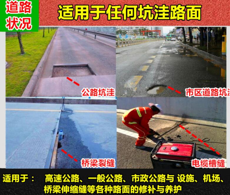 瀝青冷拌料/冷補(bǔ)瀝青混合料瀝青是一種高科技道路修補(bǔ)材料,主要作用就是修補(bǔ)路面坑槽、道路鋪設(shè)等,F(xiàn)代化施工要求施工效率高,并且不能耽誤交通,河南鄭州瀝青冷拌料/冷補(bǔ)瀝青混合料廠家直供,全天候道路修補(bǔ)材料,施工快速,即刻通車,在國內(nèi)許多市政道路、一般公路、高速公路得到推廣應(yīng)用。